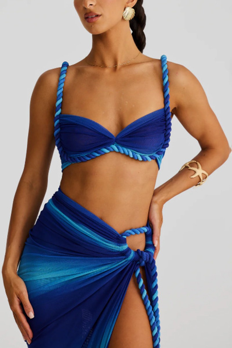 Stylish two-piece set with bold rope details for an eye-catching design. The knot accent adds a chic and unique twist. Ideal for a fashionable night out.