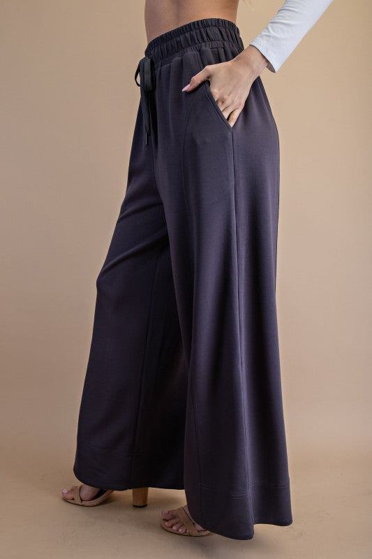 Elevated double soft knit pants with a drawstring waist. Complete the set with our matching Grey Hoodie Knit Top.
