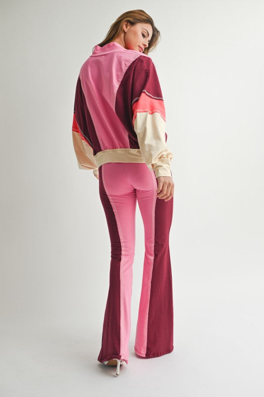 Trendy babes will love the Karolyna two-piece set. The pants are wide leg and the top has a zipper which can be worn open or closed. Style the pieces together or maximize as separates.