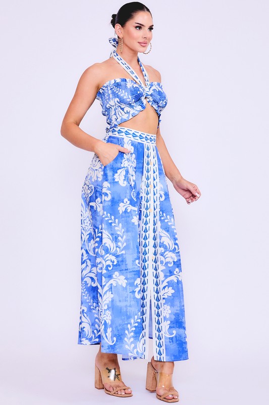 Be an on-trend babe in this printed set! Our Tianna Set pairs best with heeled sandals. This top is designed with a smocked ruffled bandeau and the skirt has an elastic waist and pockets.